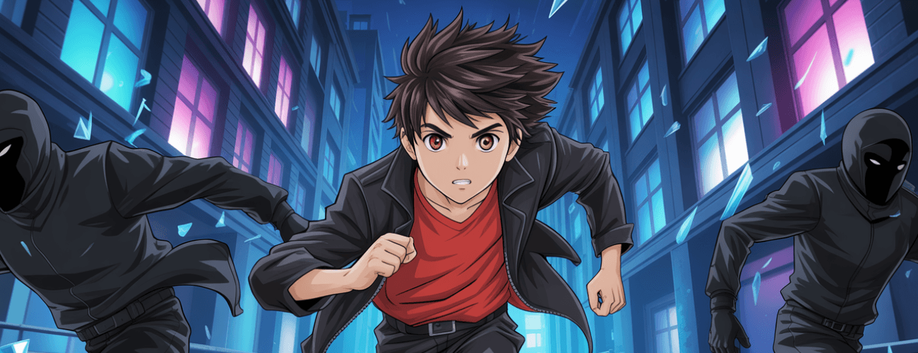 It’s late evening in Nova City—a futuristic metropolis glowing with neon. The skyline crackles with energy from floating billboards and drone traffic.